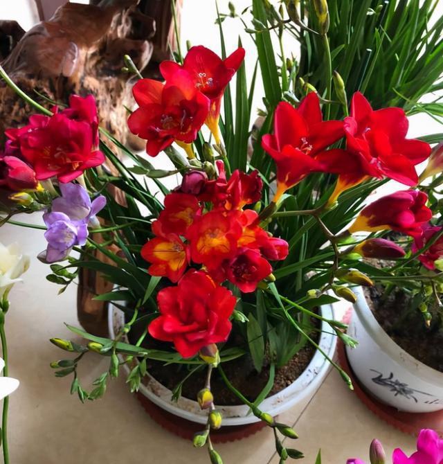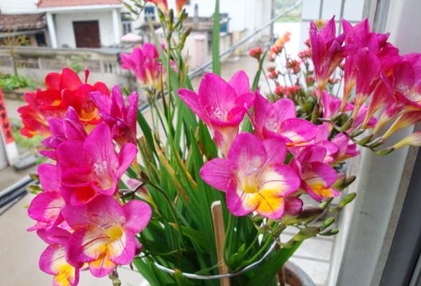 香雪兰是一种球根类的花卉,相对于朱顶红、风信子类的种球,它的种球很小,但开花却很香,很艳丽,而且花量也大,家里养一盆,只要盛开,满屋都是它的香,像喷了香水一样。 香雪兰的球根 种下,温度保持在8度以上,最好在15度左右,也不要太高,不然出芽之后,易徒长,养护得当,出芽后2-3个月开花,长叶期间要多晒太阳,防止徒长(种的时候埋深点也可防徒长)。 并且一个月施一两次磷钾肥,比如说花多多2号,或是磷酸二氢钾,兑成1:1000的水溶液,直接灌根,能多开花,开花后满屋飘香。