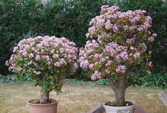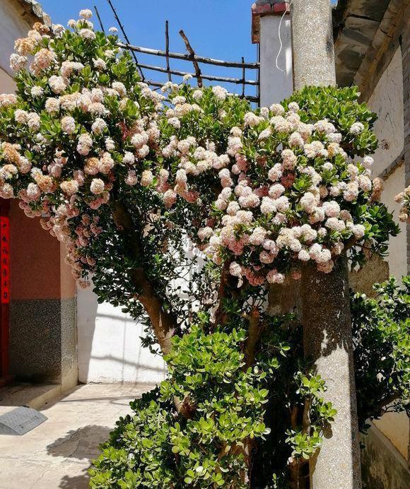 玉树是一中多浆植物,叶片肥厚,温润如玉,枝干生长久了,能变成木质化,最后长得像一棵小树一样,养好了,可以打造成老桩盆景。 玉树在南方地区,地栽的可以长得高如树,能成活几十年,满树繁花,十分漂亮。 但是玉树的耐寒性不好,大部分地区,都是盆栽养护,盆栽的玉树,就是再高大,也会是用一个小花盆,如下图。 不管是小盆的玉树,还是大盆的玉树,所使用的花盆,都相对较小,平时养护,还不能多浇水,多晒控水,一个月施一次复合肥,更利于它的生长。