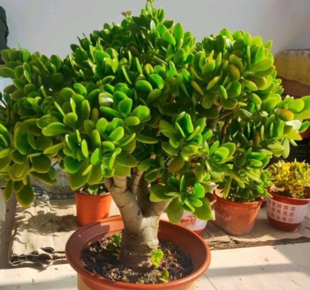 玉树是一中多浆植物,叶片肥厚,温润如玉,枝干生长久了,能变成木质化