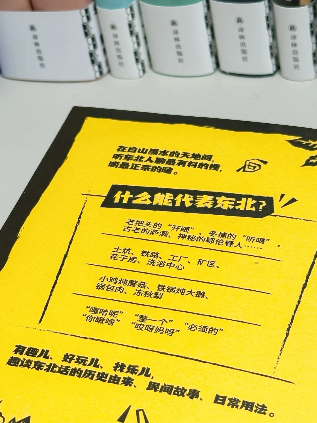 🔺作者马晓晴,是来南方工作生活多年的资深东北大哥,办过杂志、当过主编,能写善绘,妥妥的跨界高手。他真诚书写了东北话的前世今生,浓缩在这本小小的“文化词典”里,回望故乡的同时,也带我们一同走近东北的方方面面,更好地了解东北故事。可以说,这既是一本幽默的方言学习书,也是一本关于东北民俗、历史、地理的文化大全。