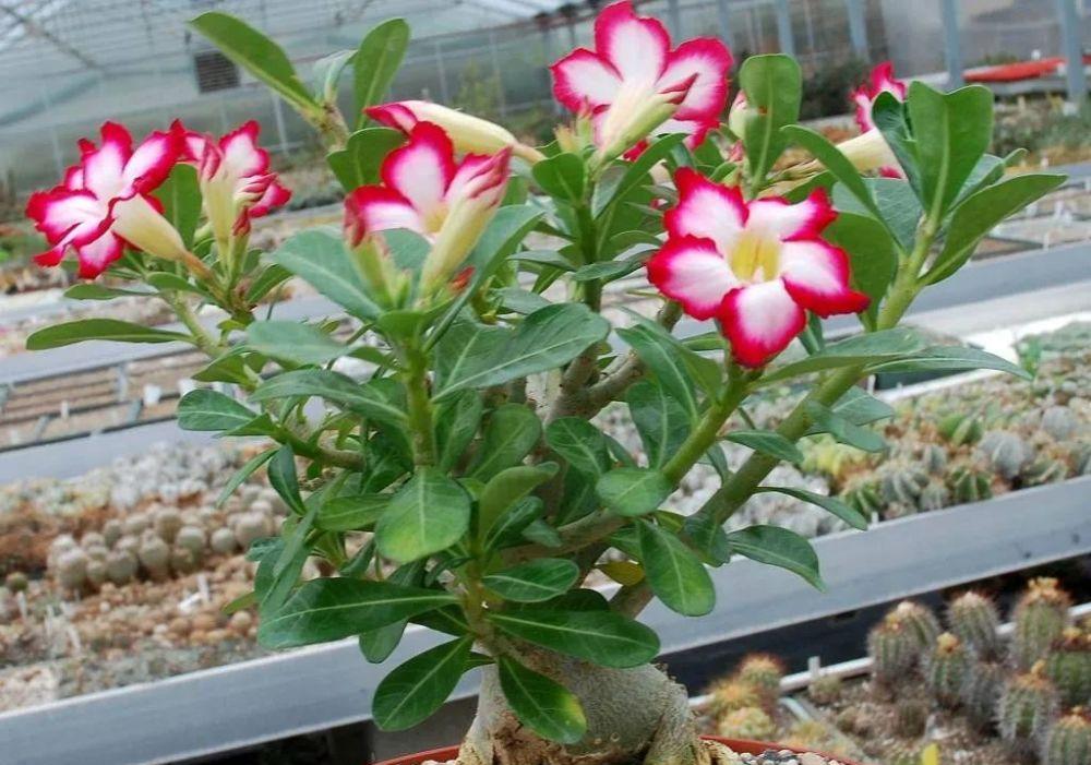 观赏品种的沙漠玫瑰,花朵更大,花色更丰富 沙漠玫瑰并不是沙漠里的玫