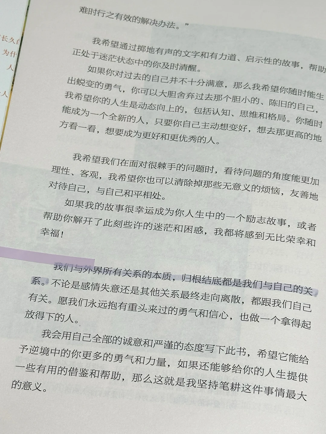 很难想象,这本书的作者竟然是一位95后的小女生。总觉得这个年纪的女孩子,还是涉世未深的懵懂样子,对感情、对工作、对生活,或许还是抱着些许不切实际的浪漫幻想,又或是不撞南墙不回头的执拗劲儿。显然,雪柔是一个清醒通透的女孩子。她能清楚地知道当下什么是最重要的,知道该如何选择才是对自己的未来负责,知道该如何规划自己的人生。