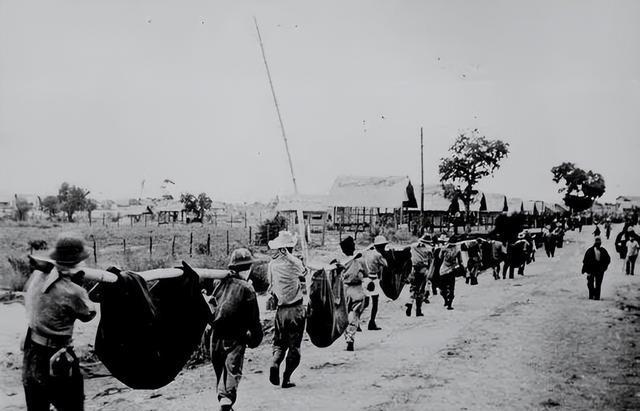 被俘人员除了行军,还得为日军搬运物资。