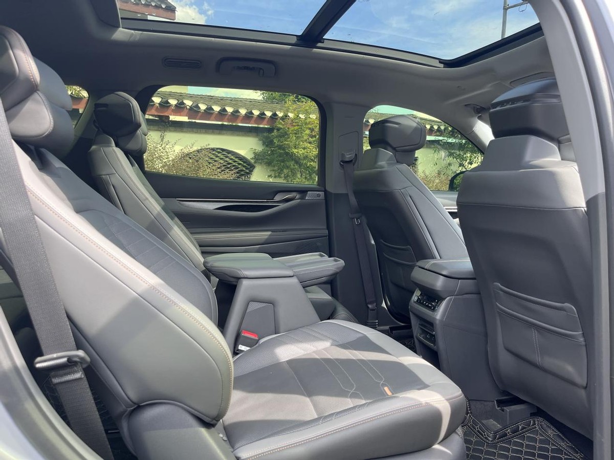这种全家老小齐出动的长途奔袭,锐界L的大空间绝对是刚需。5米的车长真不是盖的,我们五口人坐进去(俩大人、俩老人、一个半大孩子),一点不憋屈。特别是第二排那两个头等舱座椅,两个老人一人一个,上车没多久就研究着把座椅调成了接近平躺的模式(一键搞定,确实方便),舒舒服服的,一路补觉,到了景点才有精神头儿挤人流。孩子坐第三排,空间也够用,自己玩点玩具也不吵闹。
