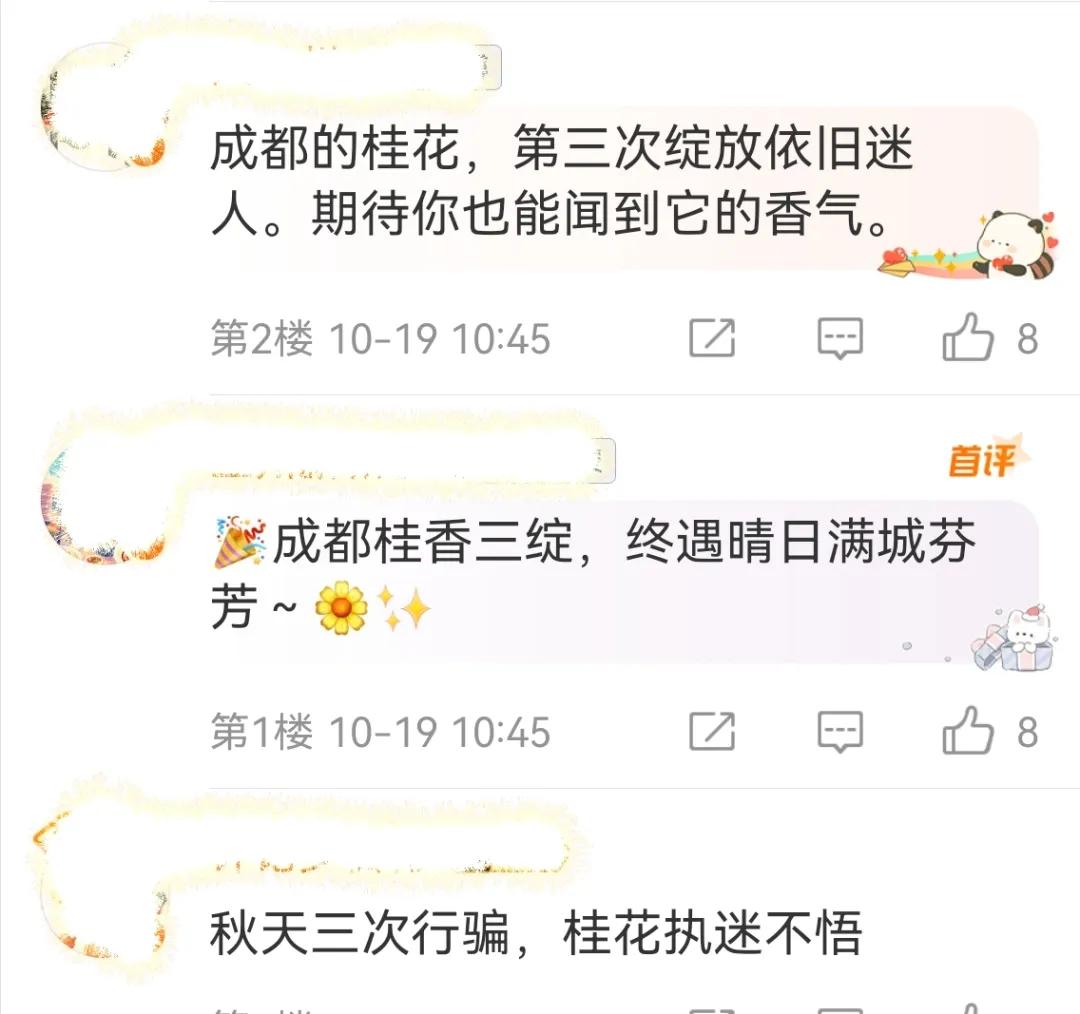 不仅开花轮次有差异,不同品种的桂花也“性格”迥异。祝鸣川指出,这次参与三轮开花的主要是金桂、丹桂;四季桂则属于“超长待机型”,在适宜温度下可陆续开花至11月甚至更晚,一般不会出现典型的三轮集中开放现象。