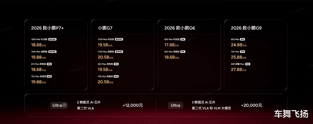2026小鹏全球新品发布会上市多款新车,2026款小鹏P7+售价18.68万起,小鹏G7超级增程19.58万起售