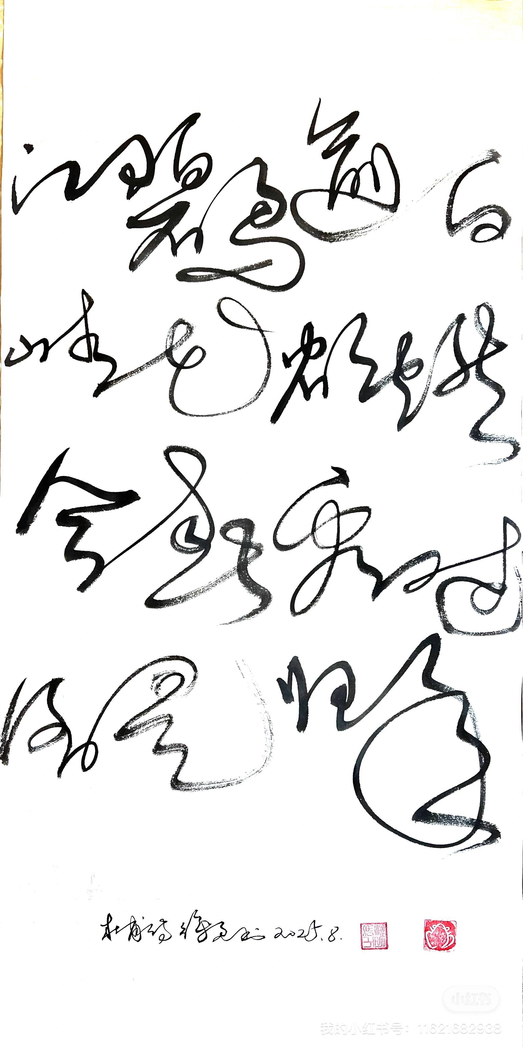 第二,横书是当今世界文字的主流,人的横向视野宽于纵向;古人繁体竖书已到极致,应将其运笔、布局、疏密特别是草书的牵连、借代笔画等借鉴到横书中;以开拓出全新的创作发挥空间。