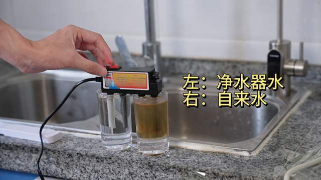 它的滤芯是 0.0001 微米精度的 RO 膜,配合 12 层母婴级精滤系统 和 16 页超长加宽 RO 膜,能把水里 200 多种有害物、病菌全部消杀。我拿水质电解器做了个实验:自来水一电解,水立刻变黄变浑;而宫菱净水器出的水,几乎没有沉淀,透明度很高。