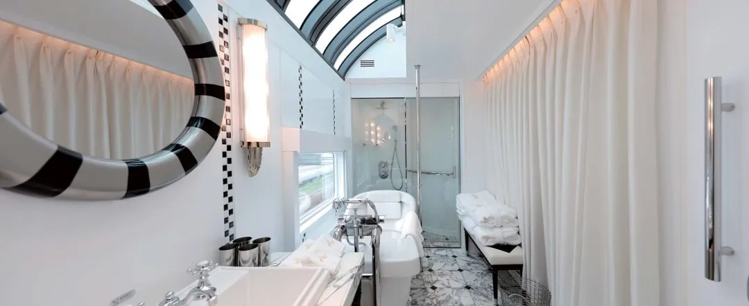 不仅是路线和涂装上,TWILIGHT EXPRESS里面配置的服务也是开创性的。10节车身中,寝台卧铺车厢、餐车车厢、酒吧车厢一应俱全,俨然一个移动酒店,可以说搭乘这个车,再长的时间都不会觉得无聊。