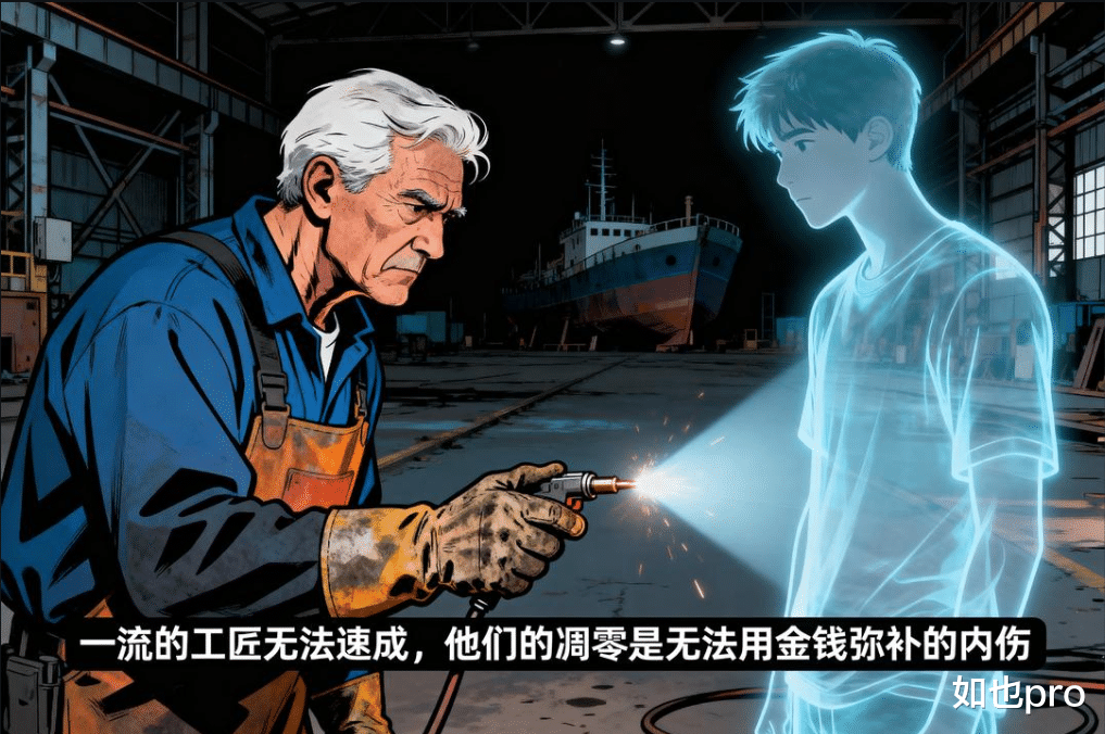 其次,是人才的断层。一个一流的焊工、一个经验丰富的舰船设计师,不是在大学课堂里能培养出来的。