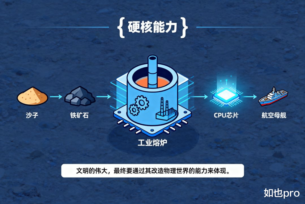 我们必须清醒地认识到,一个国家真正的护城河,从来不是股市指数的涨跌,也不是社交软件的流行,而是那些能够在物理世界里,将沙子变成芯片、将铁矿石炼成航母的硬核能力。