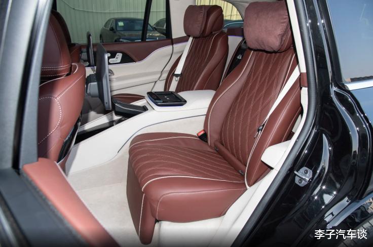 而在座椅布局方面,迈巴赫GLS的4座版也有普通GLS的高仿版,从前排副仪表台到后排隔断,都有1:1的复刻,所以当你看到豪华行政座舱中配备了座椅按摩/通风/加热+车载冰箱等功能时,大柏林之声音响与氛围灯相映成趣,那么可能并不是你想象的那么简单。当然,配置可以改,车身尺寸细节是无法变动的,迈巴赫GLS与奔驰GLS不共用生产线,所以我们可以通过观察车辆的后排车门长度来辨别。正常条件下,迈巴赫GLS的后排车门长度比普通GLS长5cm,这是为行政座椅预留空间,也是我们难以察觉但影响乘坐体验的重要细节。