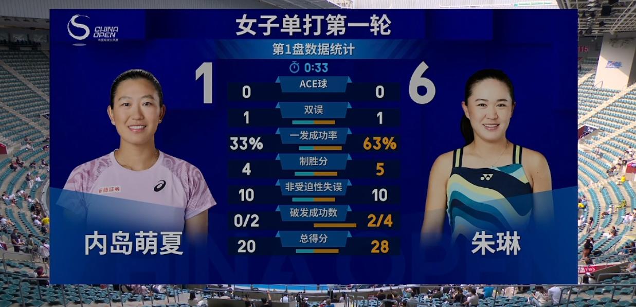 谁也没想到,中网第二个比赛日最大的惊喜,来自一个快被大家遗忘的名字——朱琳。这个世界排名只有253位的中国金花,面对排名比自己高出一大截的日本名将内岛萌夏,硬是打出了一场让人热血沸腾的比赛。两盘比分6-1、6-3,干净利落,直接把对手送回家。