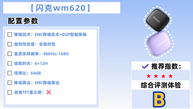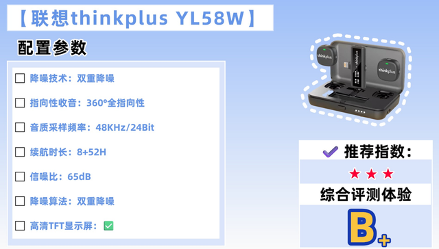 音质好不好,重点看三个核心参数:48kHz/24Bit采样规格、≥80dB信噪比,还有20Hz-20kHz频响范围。采样规格决定声音还原度,信噪比影响底噪多少,频响范围越广,人声细节越丰富。尽量选标注了实测参数的机型,别被“高清收音”的噱头骗了,能保证在不同场景下都收得清晰自然才靠谱。