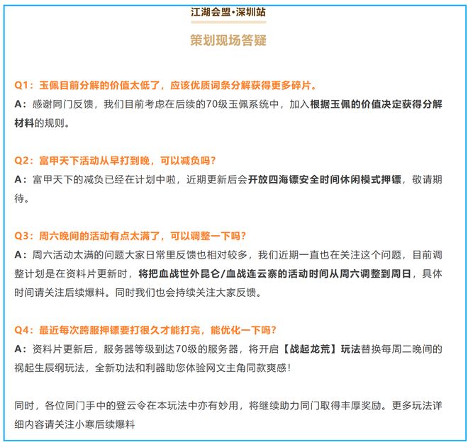 而《逆水寒》的策划团队也未置身事外,全程以“服务者”姿态与玩家深入交流,累计收集到100余条关于游戏优化的意见,并当场承诺后续将推出大幅减负措施,不难想见,策划团队后续又将进入高强度工作状态。