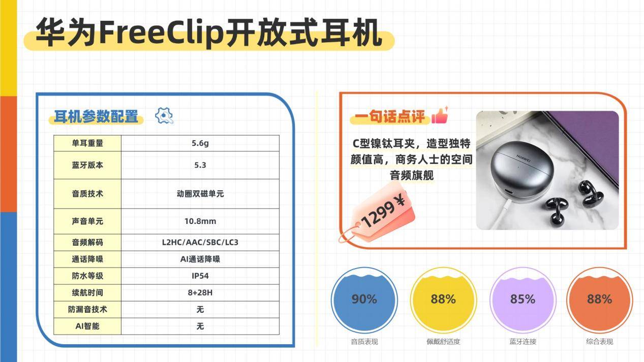 音质上,FreeClip搭载10.8mm双磁路声学单元,融合华为自主研发的空间音频技术及头部追踪功能,可实现小于1°的精准动态校准。无论是观影还是听音乐,声场都会随头部转动自动调整,为用户带来更强的沉浸式听感。