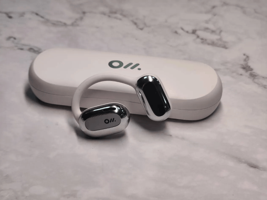 Oladance OWS 2在外观设计上凸显科技感,银色机身搭配哑光漆面,视觉效果精致。耳挂部分内置记忆钛合金丝支架,外层包裹亲肤硅胶,单耳重量约12.8g,佩戴轻盈舒适,稳定性良好,日常短时间佩戴无压力。