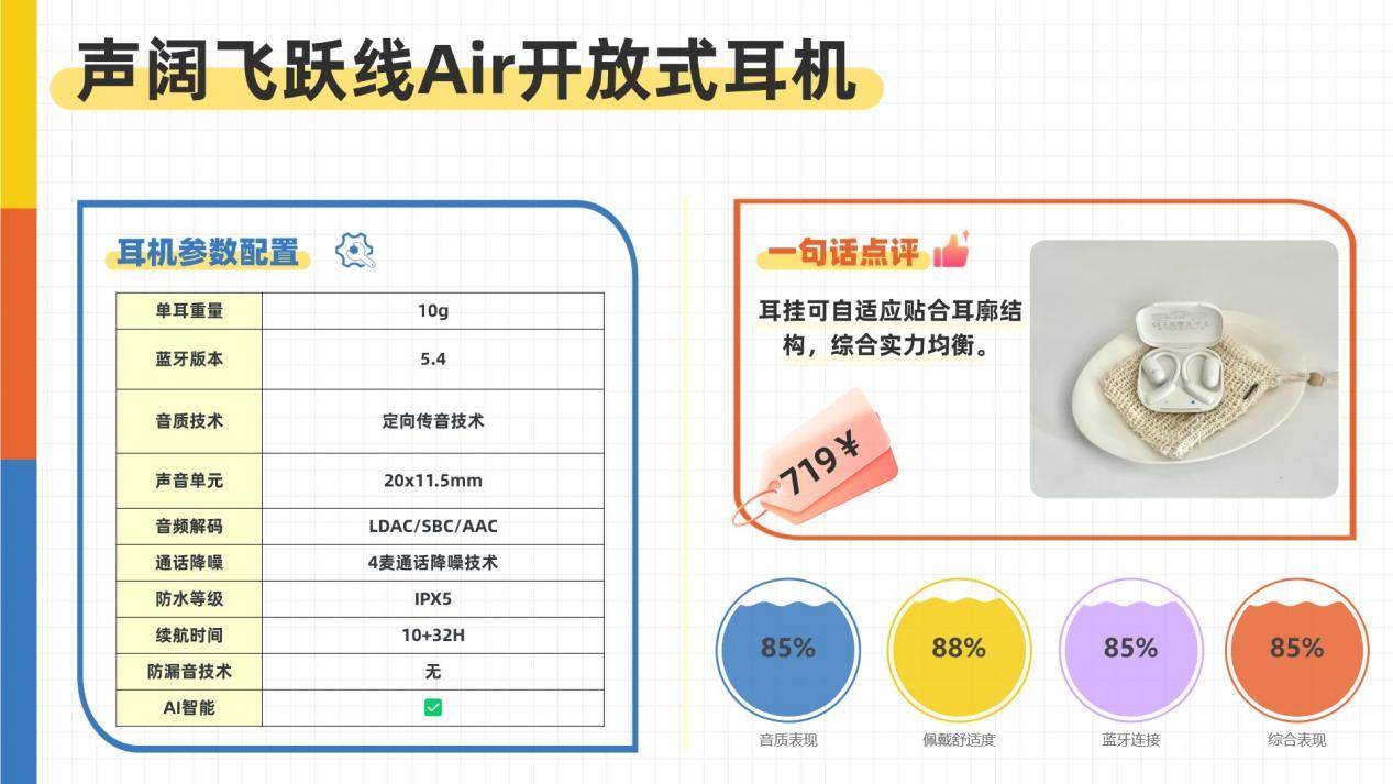 不过,受气传导原理限制,声音通过空气传递时,在嘈杂环境下易受外界干扰,细节解析力与低频下潜稍显不足,对追求极致音质的专业用户而言存在一定局限。