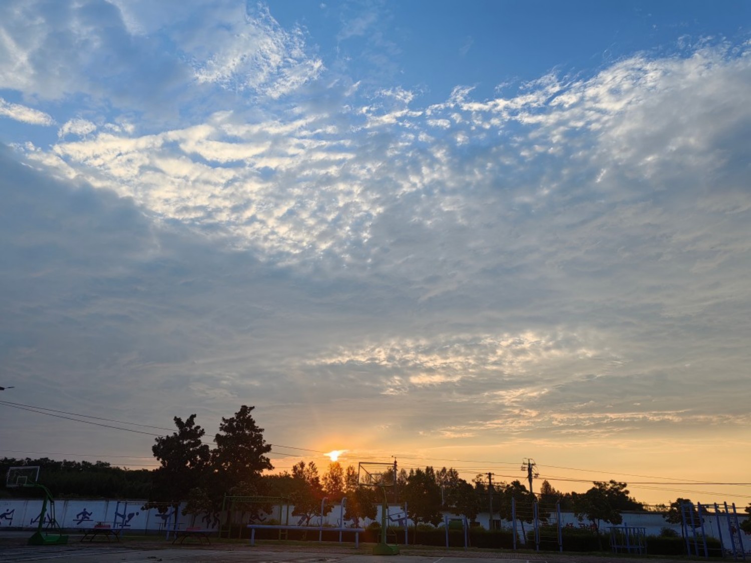 疏云流霞,暮色染金。夕阳西沉,橘色光晕缓缓没入地平。晚霞绚烂如锦,极像仙娥巧制霓裳于九天之上,随光波流转消融,伴云影幻化缤纷,乘风逍遥天地之间。