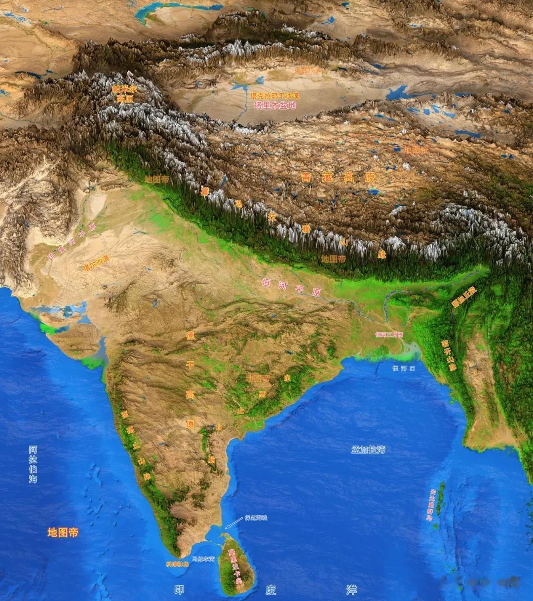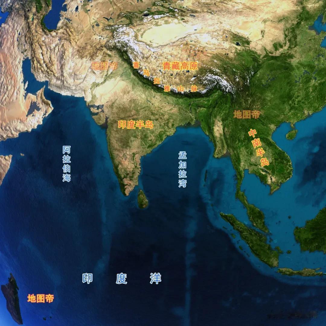 青藏高原海拔高、面积大,阻挡了北方的冷空气进入南亚,也隔绝了印度洋温暖潮湿的空气。