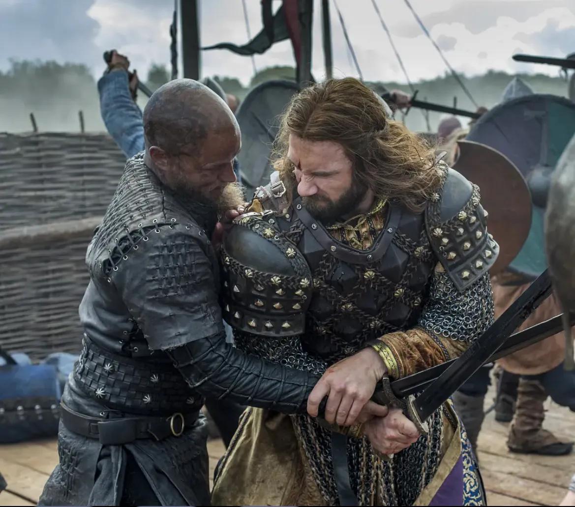 但《维京传奇》最实在,是它不会让角色定在“善恶对立”里。拉格纳是英雄,也是虐夺者,他还会对着修道院的财富心生贪婪,但也会和新风基督教的修道士阿thelstan结下四海盟约。当阿thelstan被朋友弗洛基杀害,拉格纳抱着他的遗体默默埋葬,那句说不出口的离别,比战场上面对敌人还要艰难不舍——原来再坚强的勇士,也有感性和脆弱。