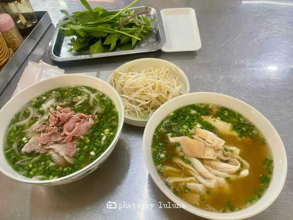 我们找了一家店点了一份鸡胸肉和牛肉的河粉,量不是很多,可以续粉,会配一份调味的蔬菜,可以单独吃也可以泡在汤里。