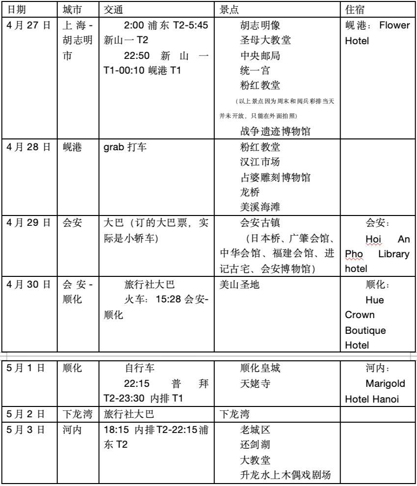 ▪️行程安排提前两个半月买的,红眼航班,没有行李额,带的40L的登山包,上机没问题。越捷航空值机的时候会称重,机场遇到一个女孩,她说她朋友背包超重,被要钱了。比价后,在智行上下的单。实际这个App用下来,不太推荐!首先,航变不通知,其次,找不到人工客服。我自己下载了越捷航空app查询到的航班变动,几分钟能查到的信息,客服要让我等三小时才能确认。