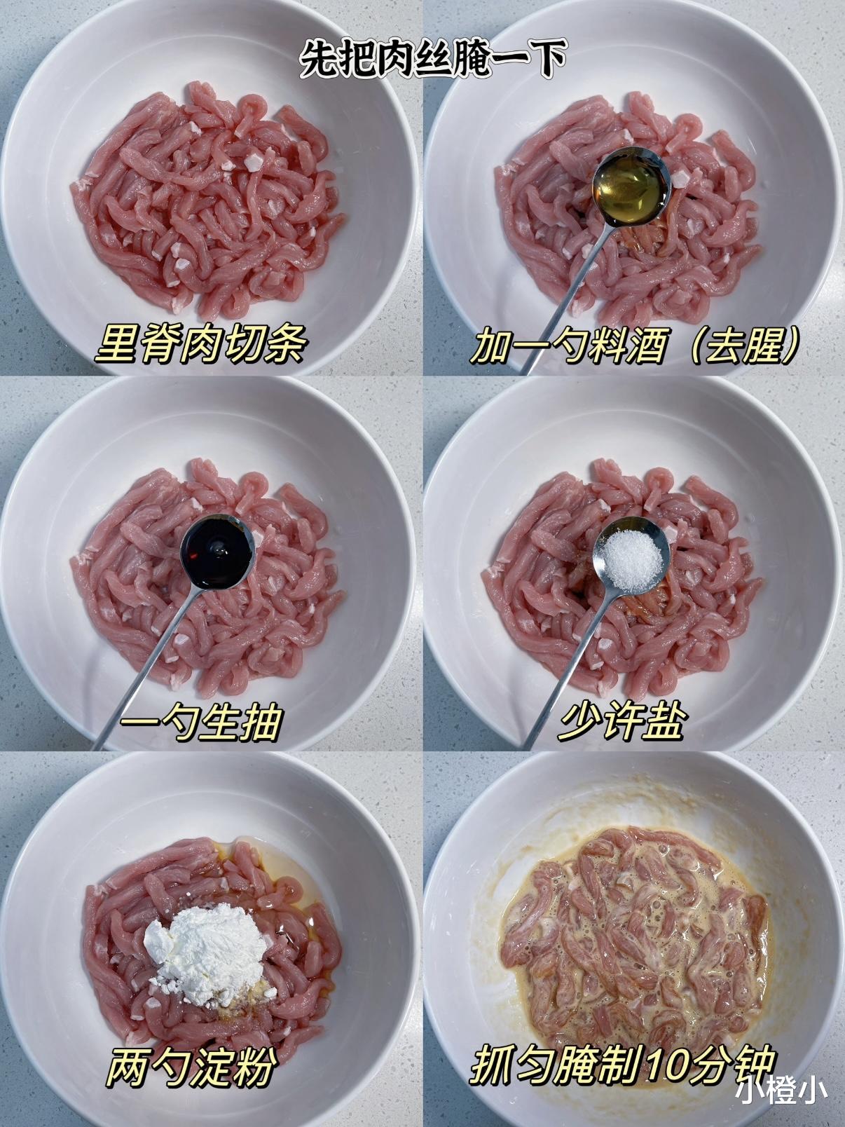 Step1 热锅凉油,油别省,滑肉不糊。下肉丝,筷子快速划散,变色就盛出——“七分熟”是嫩滑底线,多炒 10 秒老到卡牙。