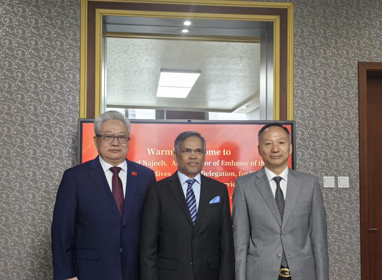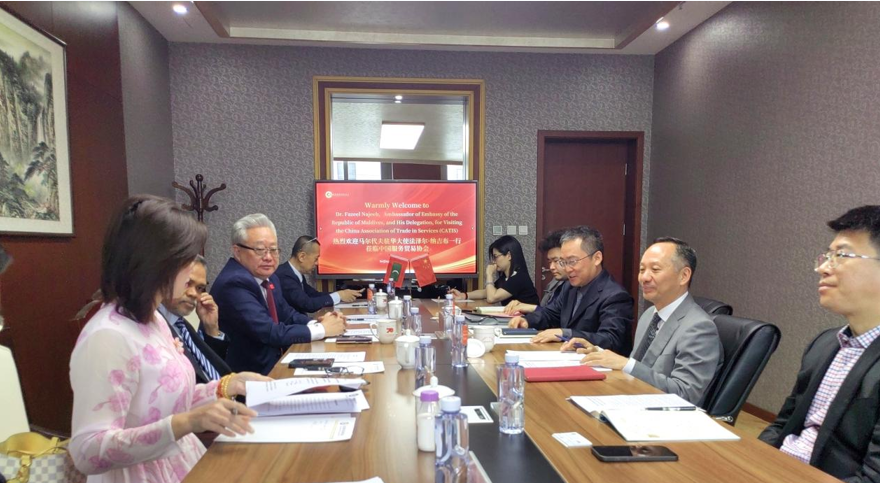 2025年9月22日在北京,马尔代夫驻华大使法泽尔·纳吉布博士(H.E. Dr. Fazeel Najeeb)与中国产业海外发展协会全球数字经济工作委员会主任黄兆锦及相关企业家一行访问中国服务贸易协会,就中国-马尔代夫之间的渔业合作与“可信贸易”发展进行了深入交流。