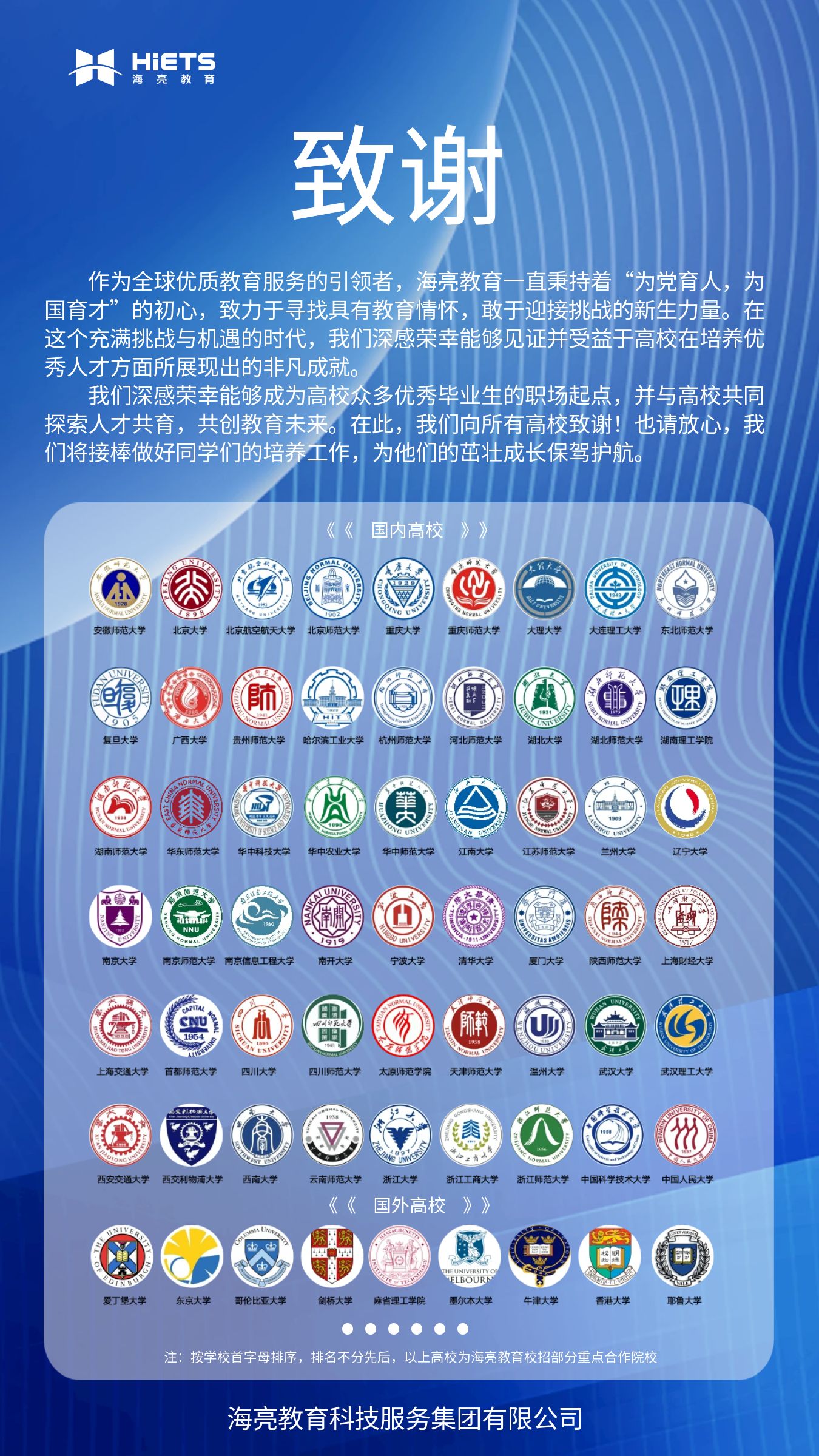 作为全球优质教育服务的引领者,海亮教育一直秉持着“为党育人,为国育才”的初心,致力于寻找具有教育情怀,敢于迎接挑战的新生力量。这个充满挑战与机遇的时代,我们深感荣幸能够见证并受益于高校在培养优秀人才方面所展现出的非凡成就。