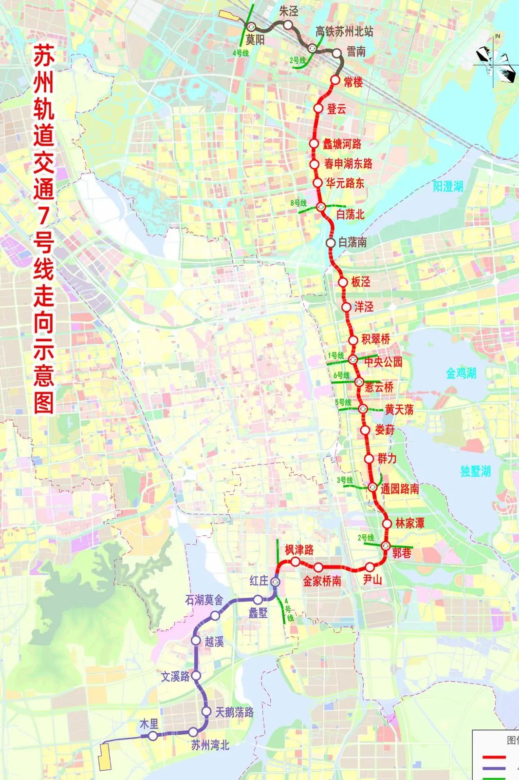 此前在10月10日,苏州市将地铁4号线支线(红庄站-木里站)割接并接入地铁7号线,意味着本次开通的7号线地铁线路起于相城区的常楼站,止于吴中区的木里站,整条地铁线路呈南北走向,途经相城区、苏州工业园区、吴中区3个区,标识为浅紫色。