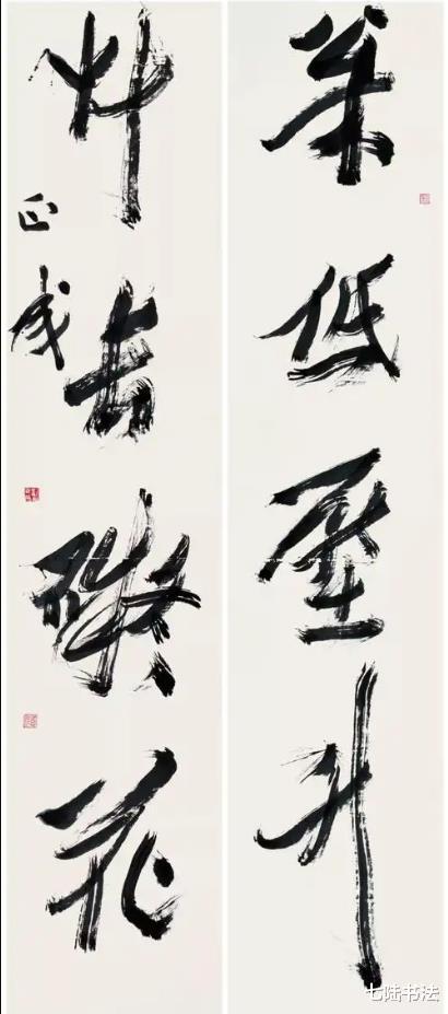 这些书法家还特别擅长突破书法的边界。他们不再只追求整齐好看,而是用不对称、不协调的笔画制造艺术冲突。