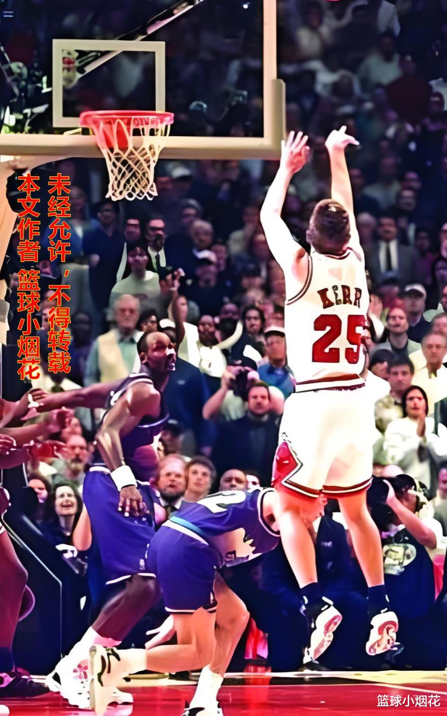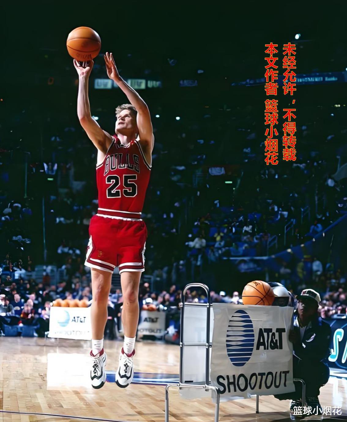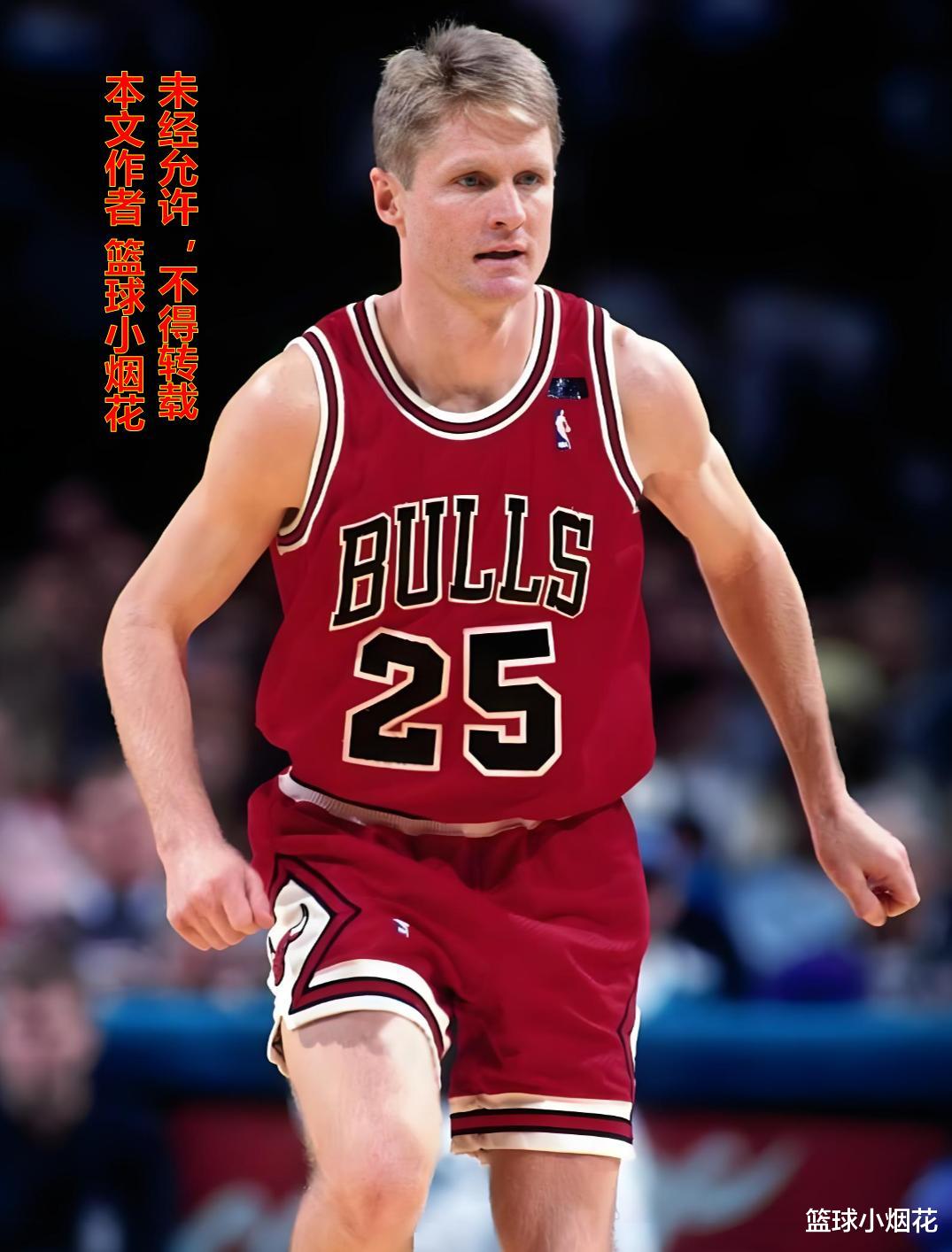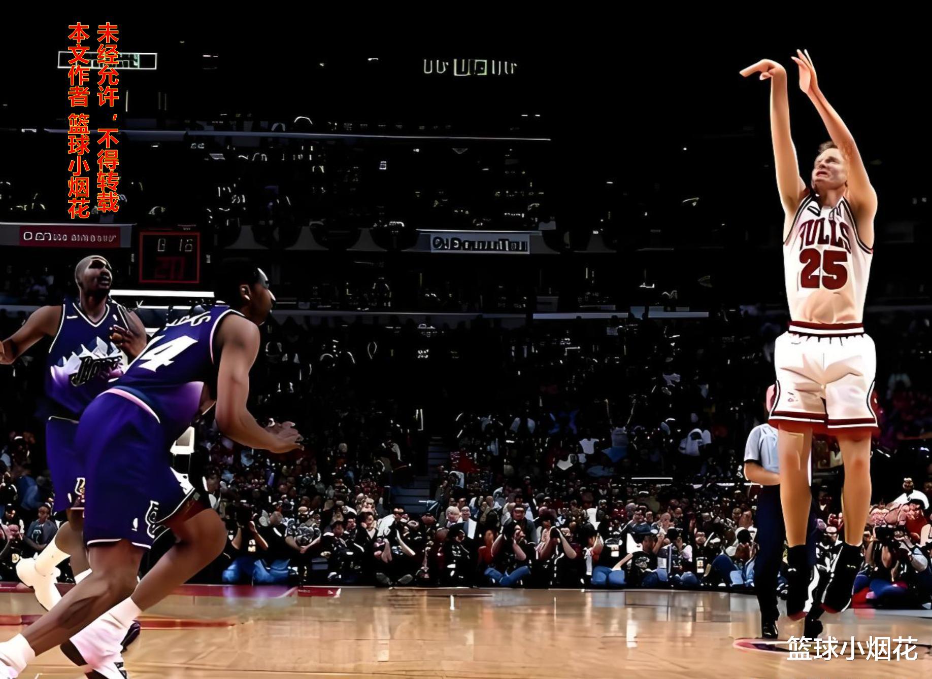 科尔在公牛打了五年,这五年时间也是他职业生涯最高光的时刻,以898投430中,接近48%的三分球命中率帮助球队拿下三连冠。