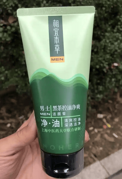 二、相宜本草男士黑茶控油洁面乳——熬夜油皮的平价控油之选