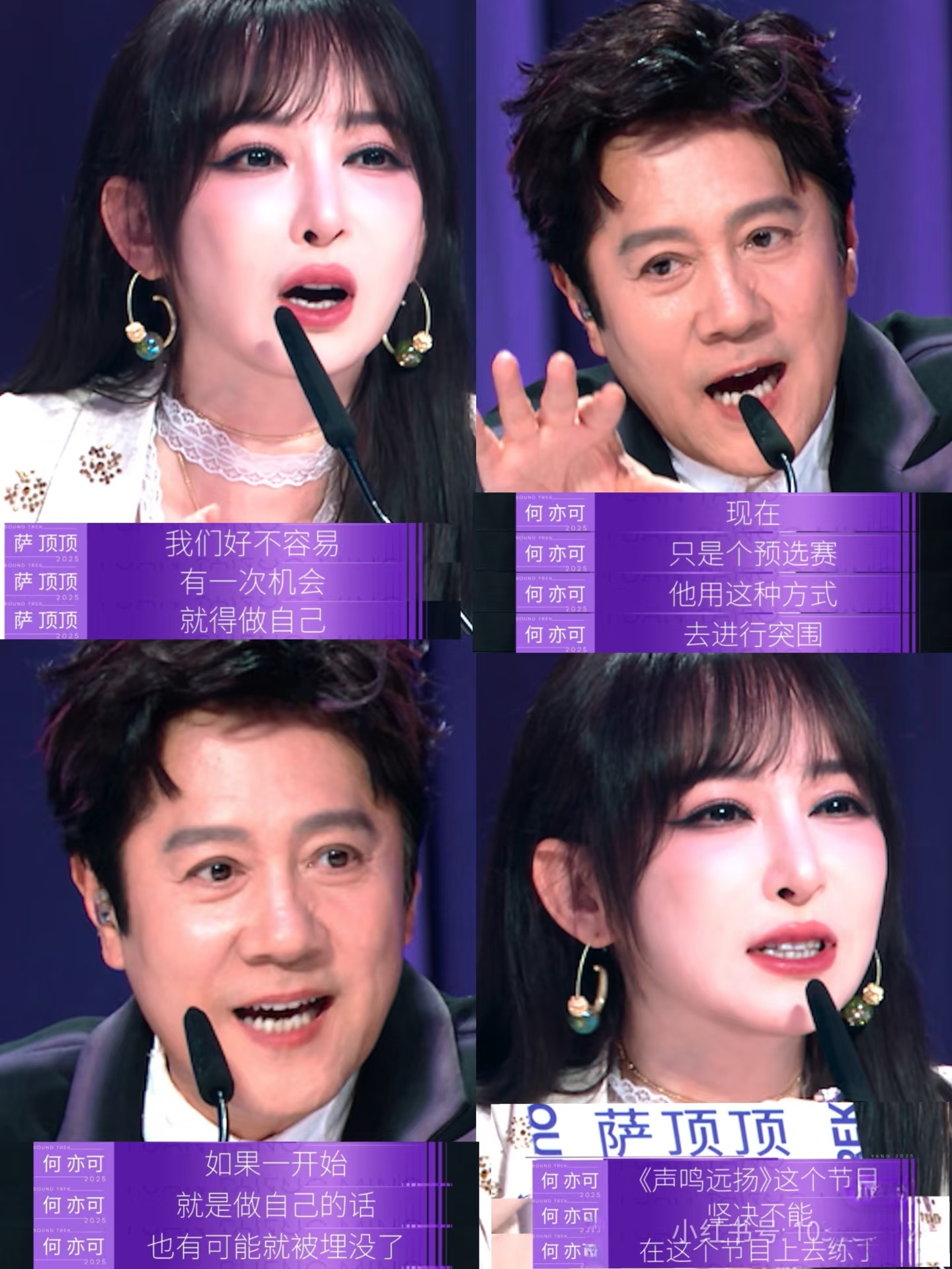 何亦可的表演从出场就充满话题性:踩着华晨宇同款“癫痫式”台风,声线里刻意复制的破碎感颤音,甚至连捂胸口、甩话筒的动作都像是原版复刻。评委萨顶顶眉头越皱越紧,终于在点评环节爆发:“这不叫表演,这叫人体复印机!”她以当年假唱翻车的亲身经历为戒,强调艺术最怕的就是失去灵魂的模仿。