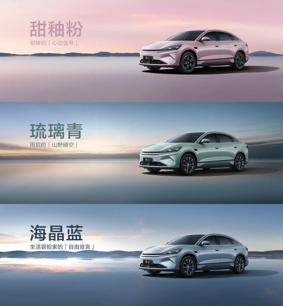 同时,为满足更多用户不同的个性化审美需求,秦L EV全系新增三款富有生命力的全新配色。甜釉粉,是专属于情侣的“心动讯号”,粉中带蓝,温暖甜蜜,车身自带“柔光滤镜”,让人一眼心动;琉璃青是献给年轻人的“气质杀”,以古法琉璃的通透为底,如雨后初晴的天空,通透又富有层次;海晶蓝是送给生活冒险家的“自由宣言”,车色如海浪随角度不断变幻,展现出玻璃棱镜效果,随手一拍就是大片。