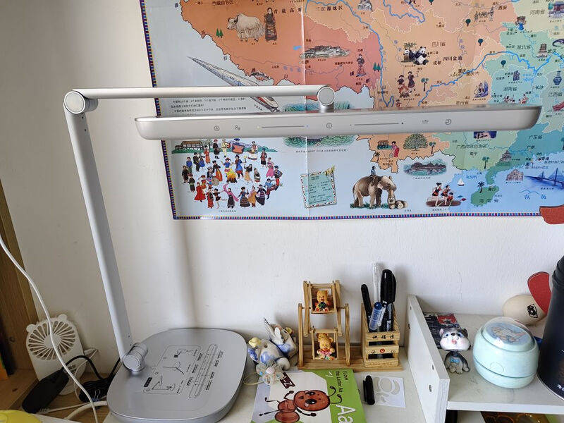 灯臂设置了多处轴承,可以灵活调节角度、高度,不管不同阶段的身高需求,还是多样学习场景,都能适配。不过该产品存在智能感应迟缓、手动操作频繁的问题;此外,色温虽然是5300K-3300K,但使用白光时,会出现刺眼眩光现象。