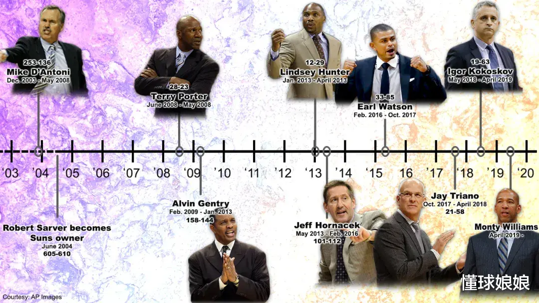 而且也不止太阳队的这个案例放在这里,湖人自己队史上也经历过“主帅混乱期”。就禅师下课之后的那段日子……从迈克-布朗到德安东尼,到斯科特,到沃顿,这苦还没吃够啊。