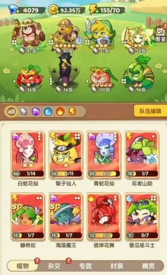 植物别平均培养,集中资源升主 C,比如桃大圣或钢铁榴莲,55 级后会发生质变;