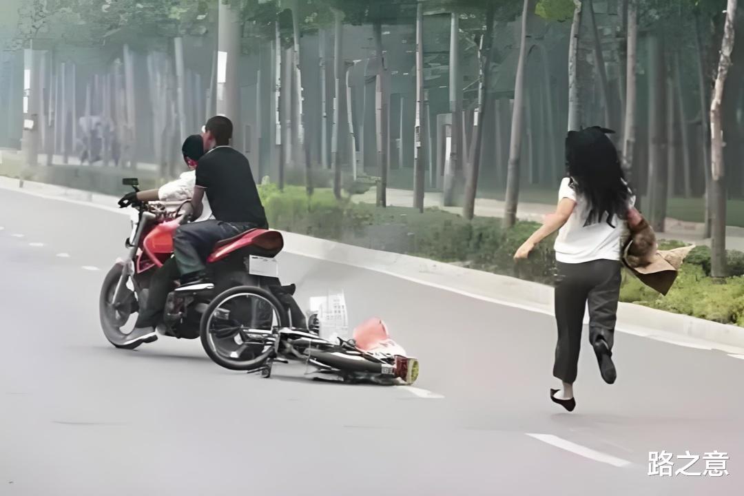 2009年10月4日上午9点,河南开封市一名年轻女子侧坐在一辆摩托车后面向前行驶,这时另一辆摩托车从后面追了上来,男子一把把女子手中包给拽了下来,女子顺势被扯倒,重重地摔在水泥地上。在女子摔下来的一刹那,后面还紧跟着一辆大型货车,眼看一幕悲剧就要上演,货车司机见势不妙赶紧打转向,这才避免了悲剧发生。摔在地上的女子伤势严重,摩托车司机立刻把她送到了医院抢救。