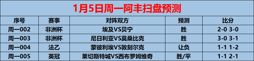 周一002 非洲杯:埃及VS贝宁