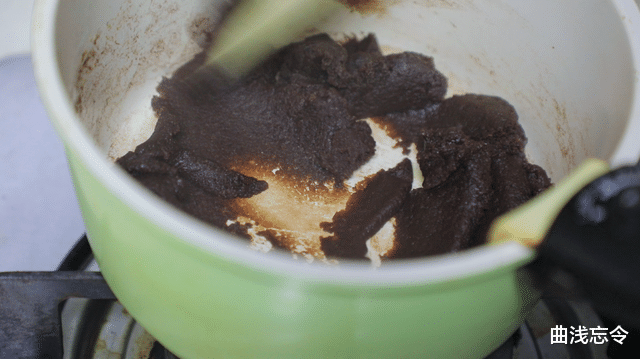 1、准备一个小奶锅,将材料中的水、黄油、细砂糖、盐放入锅中,开中小火,煮开后关火。加入低筋面粉、可可粉,将其混合,翻拌均匀。