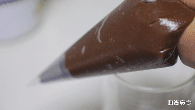 8、黑巧克力(可切碎一点)装入裱花袋或保鲜袋,隔热水至完全融化。