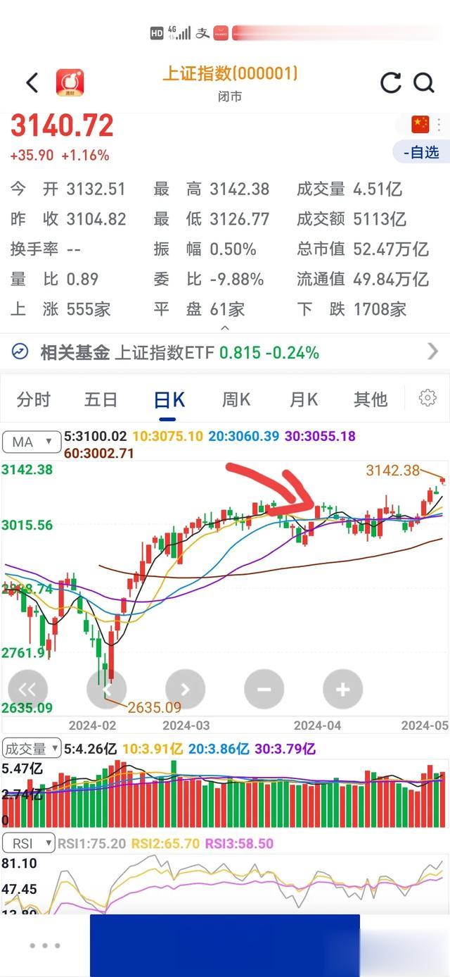 从市场的走势情况来看,这次走势的情况和去年有类似,是不是历史要重演了?我给大家分析一下,这次反弹走的也是圆弧顶,目前处于下降通道的反弹,他已经破坏了圆弧顶,已经突破向上了,形成了和2024年4月1号很相同的走势,也是突破了圆弧下降通道向上突破了,也是站在所有均线之上,后面的走势就是小碎步的震荡向下,然后再向上突破走出了新高,那么,这次的走势会不会和去年的走势一样呢?从目前的走势来看,个人认为也会震荡线下行,然后再向上突破新高。大家有没有认同的?