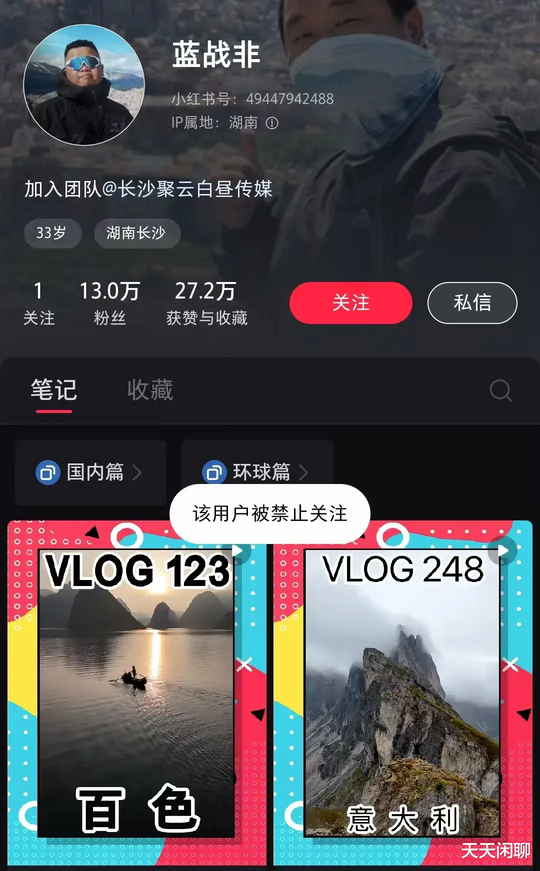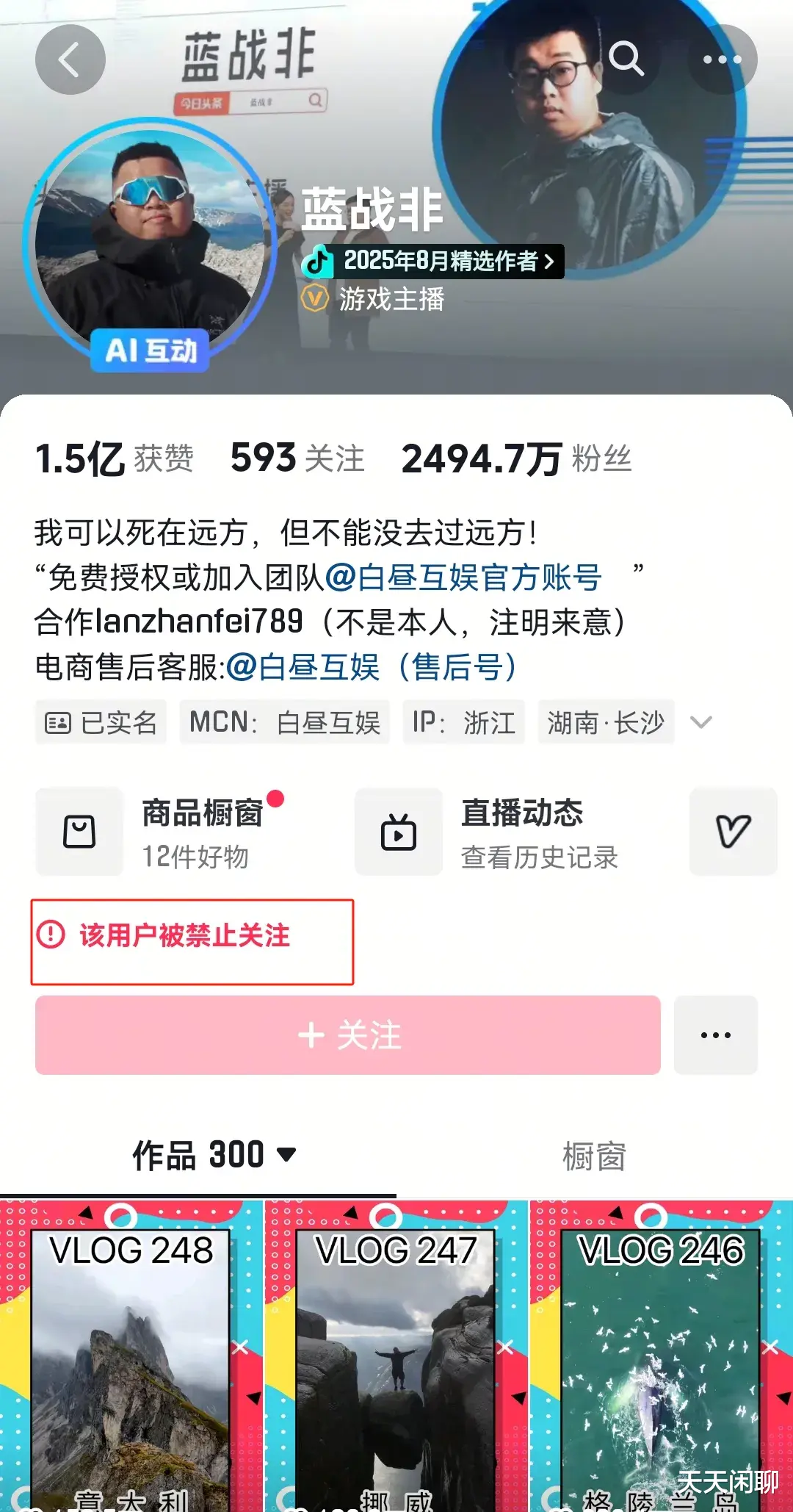 平台此次行动展现出同步性。蓝战非的抖音、小红书账号被禁止关注,而微博账号仍可正常关注。这种差异处理表明平台方在执行监管要求时有所选择。