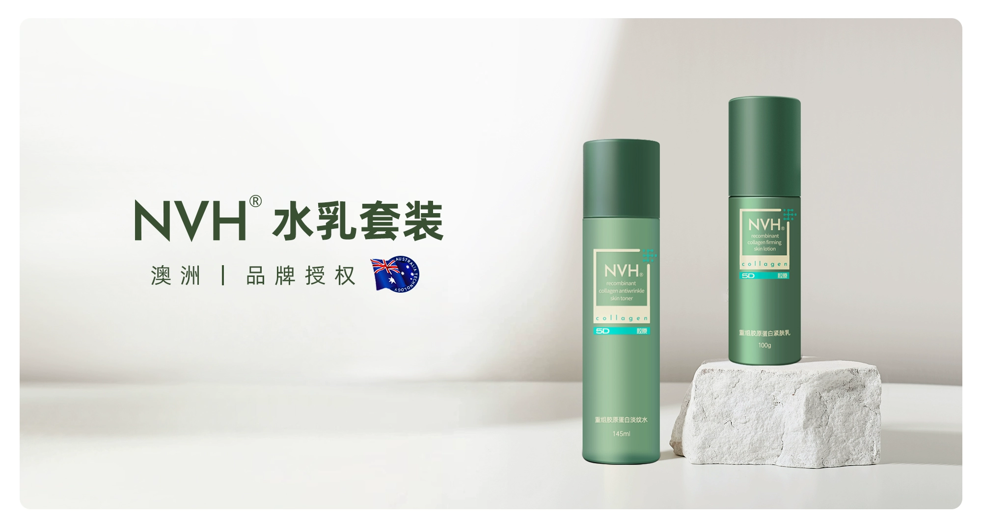 干皮适合尝试NVH 水乳套装,借助胶原蛋白实现深度滋润;