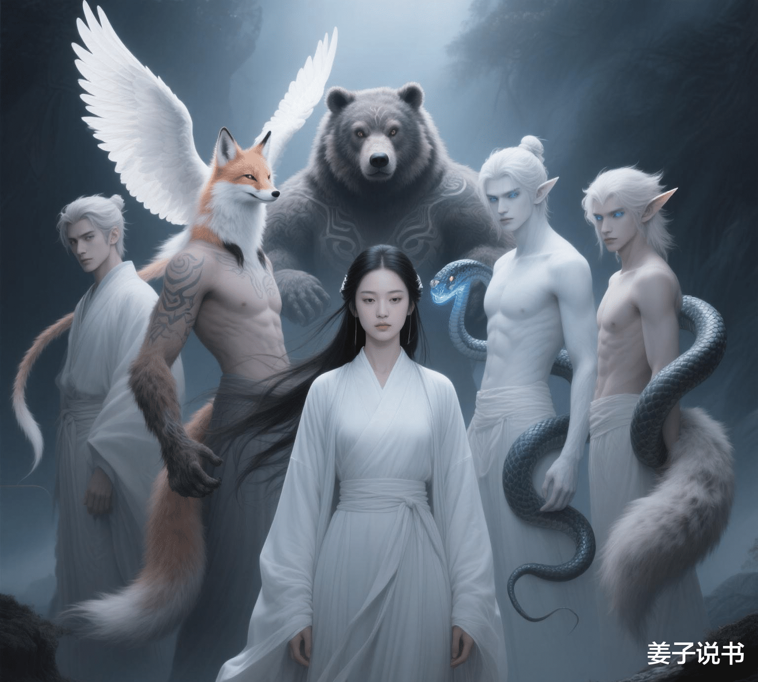 青木神树的枝条在喜烛里开出了花。玄龟族打造的青铜镜映出我鎏金点翠的嫁衣,发间五色璎珞垂落着虎牙、豹爪、狼毫、鸾羽与龟甲雕件。夜漓突然从镜中探出头,尖牙轻轻叼住我耳坠:"姐姐可知各族怎么传颂我们的婚典?说是要把五百年错过的求偶仪式都补上。"