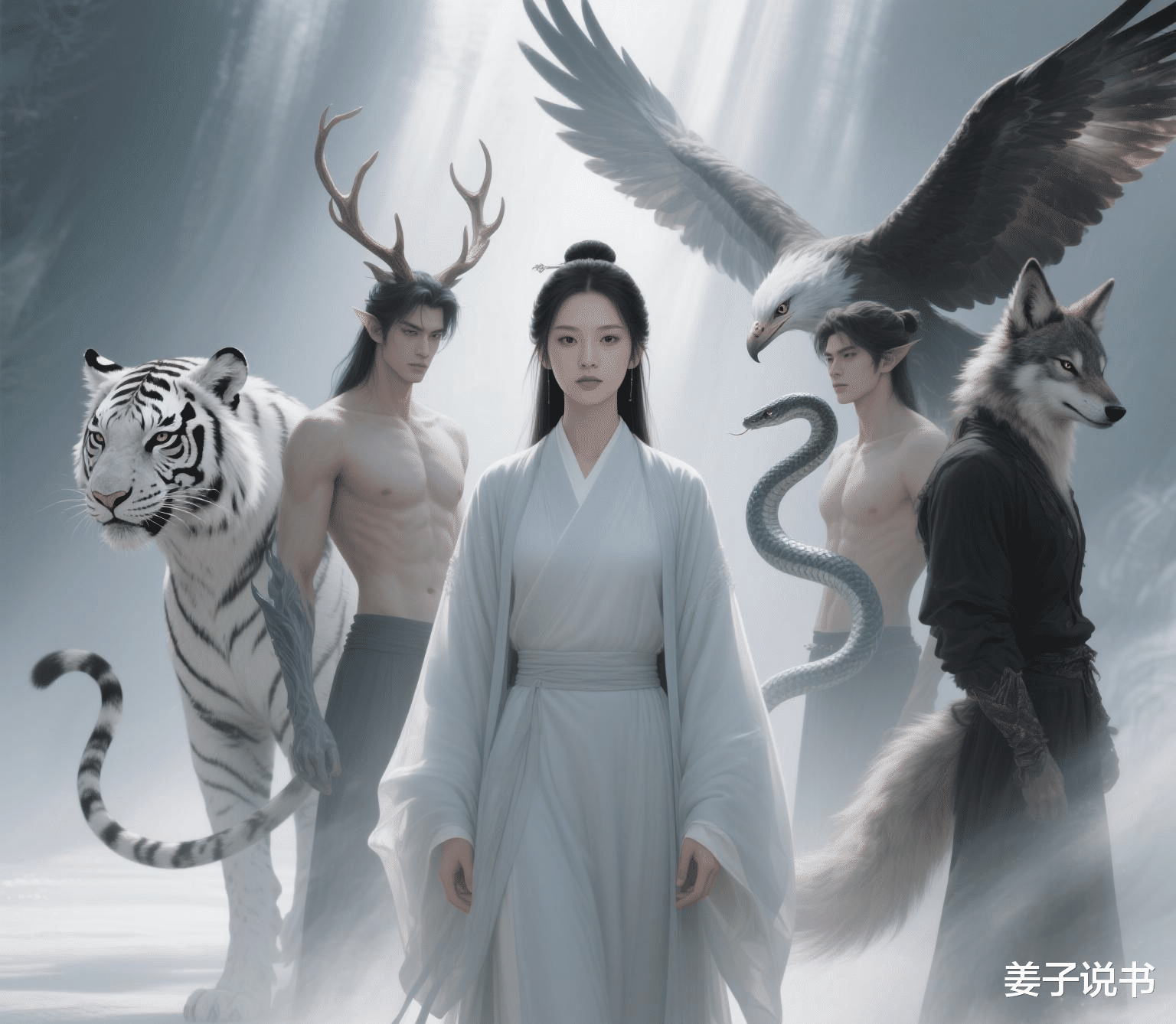 青木神树的枝条在喜烛里开出了花。玄龟族打造的青铜镜映出我鎏金点翠的嫁衣,发间五色璎珞垂落着虎牙、豹爪、狼毫、鸾羽与龟甲雕