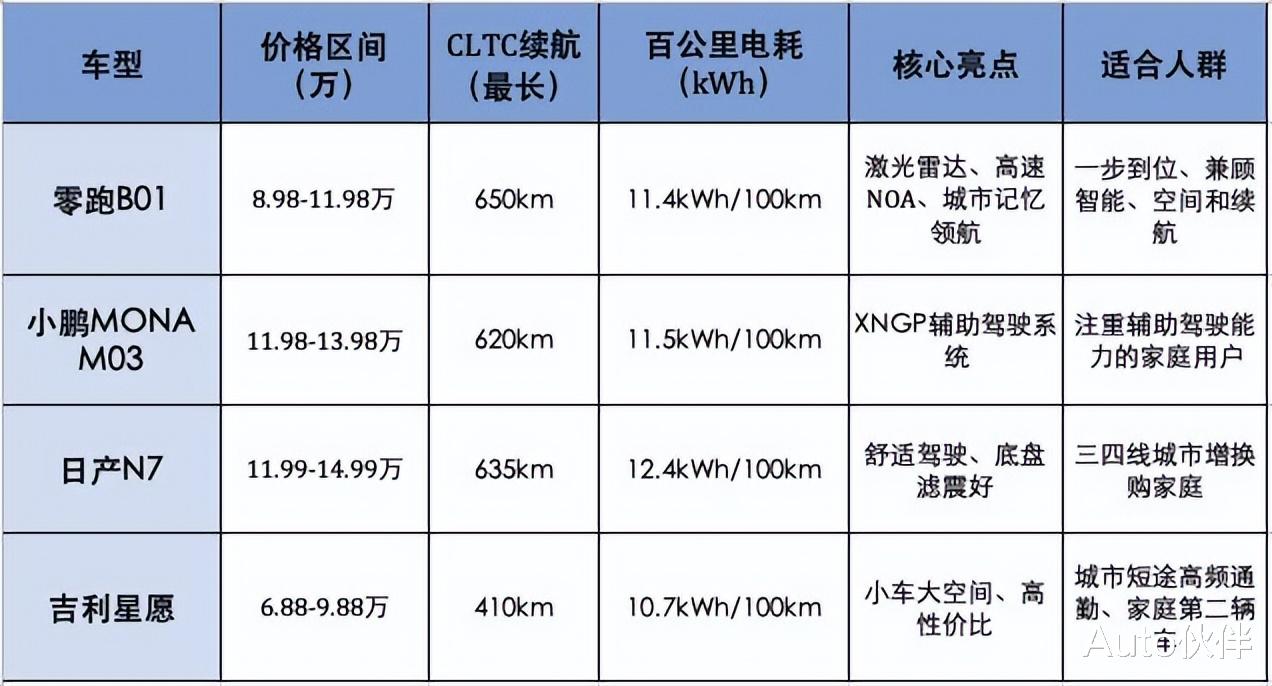 总的来说,增换购的本质,就是把钱花在真正影响日常用车体验的地方。10万元预算,已经能买到续航扎实、空间够用、智能好用的纯电家轿。无论是零跑B01的高配诚意、小鹏M03的智能成熟、日产N7的舒适可靠、还是吉利星愿的灵活实用,每款车都有其适合的人群。建议大家结合自己的通勤路线、家庭成员、充电条件等实际因素,去试驾、去感受,最终找到合适自己的那款车。
