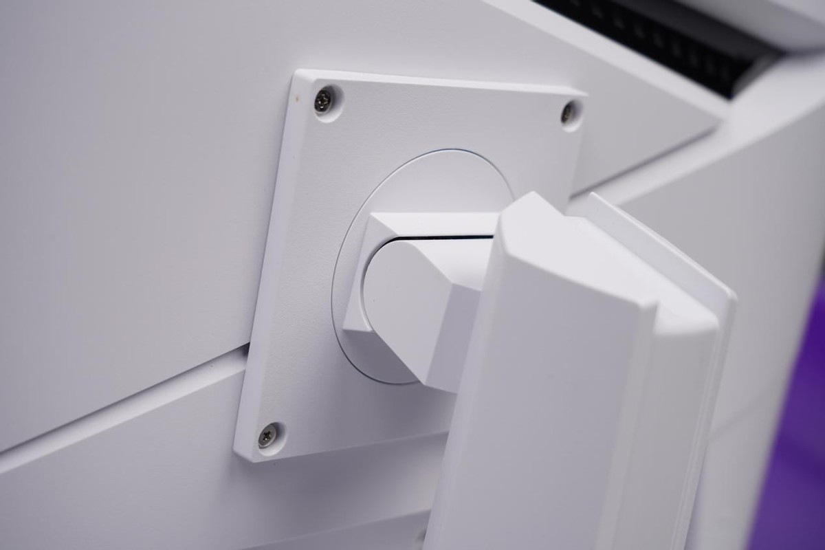 配备了人体工学支架,支持上下 130mm 的大幅度升降、正负 30度的水平旋转、负 5 度到正 20 度的俯仰调节,以及 90° 垂直旋转,能够满足不同使用场景下的调整需求,找到最舒适的观看角度。背部还支持 75×75mm 的 VESA 支架可供壁挂,总而言之根据自行的需求来布置就对了。